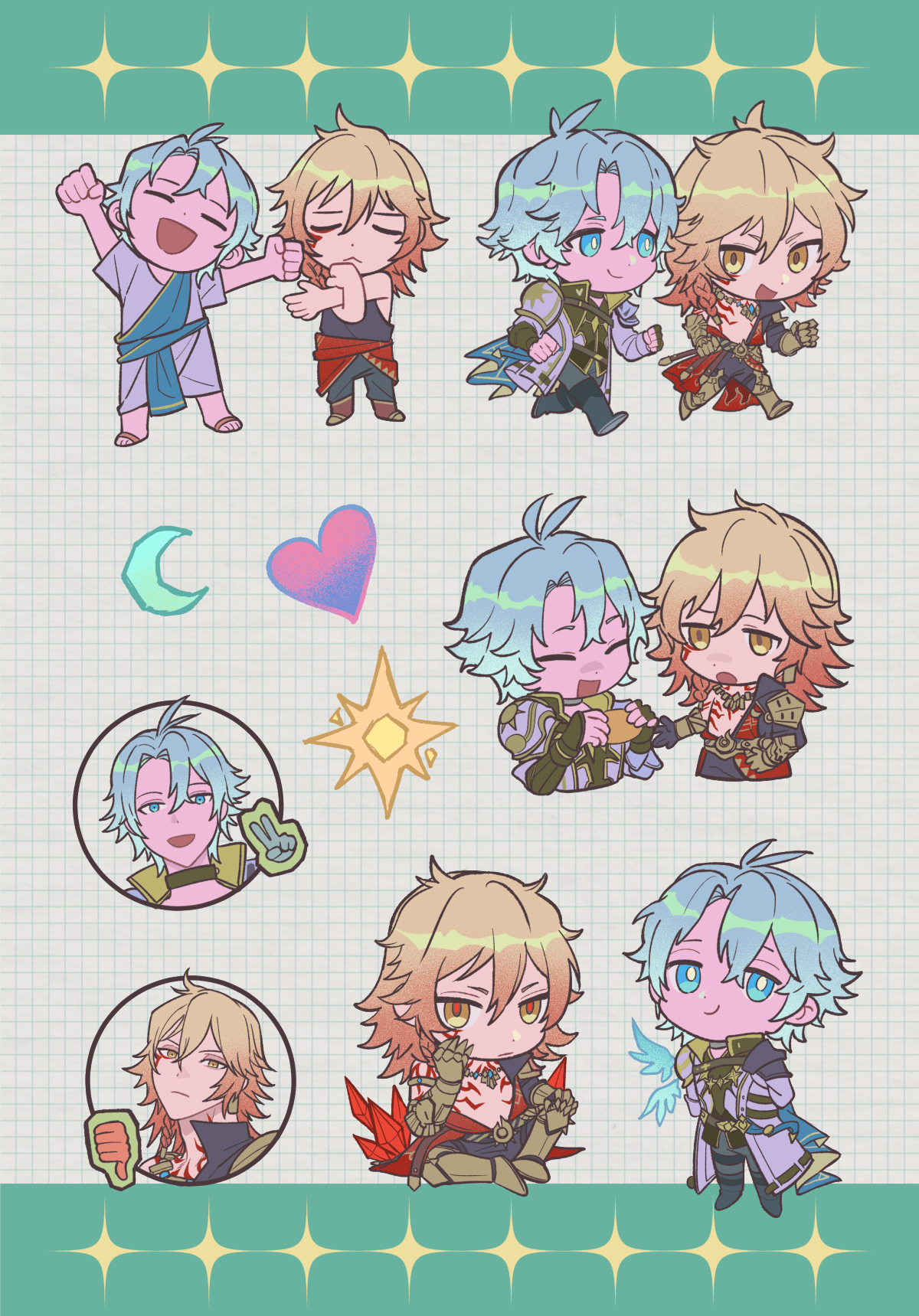 4x6/A6 really glittery sticker sheet of phainon & mydei from honkai star rail